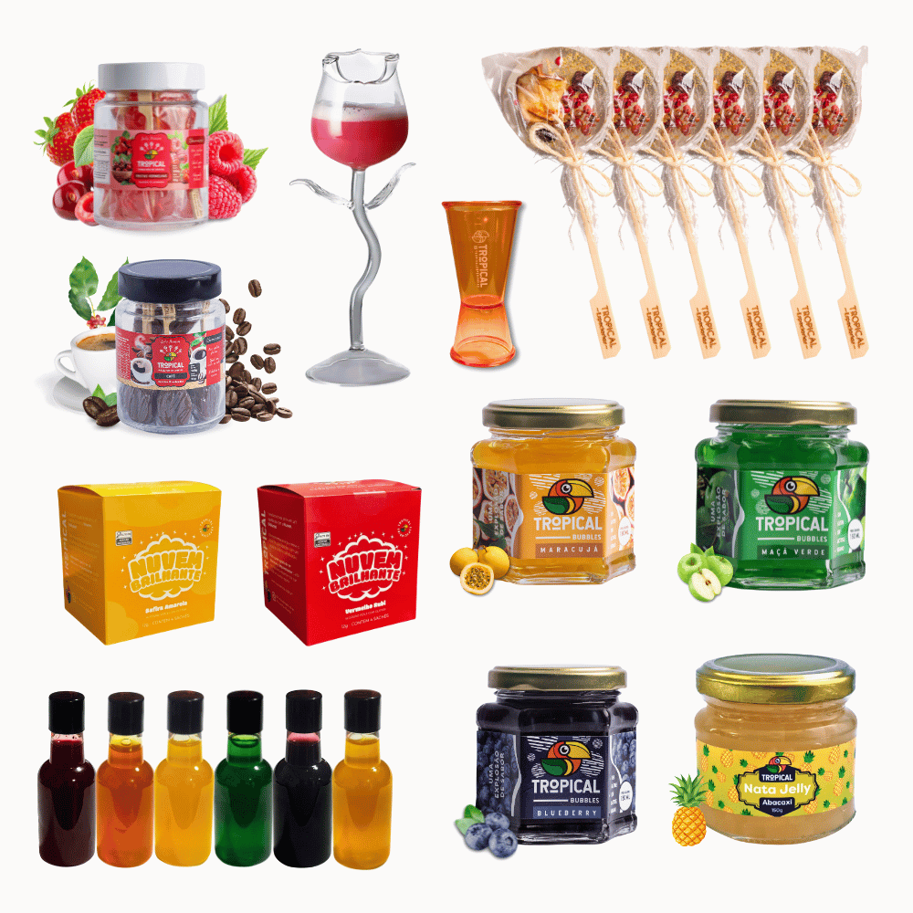 Adicionar ao carrinho [CAIXA] Kit com 4 Tropical Bubbles + 2 Canudos Inox + Dosador (Brinde)