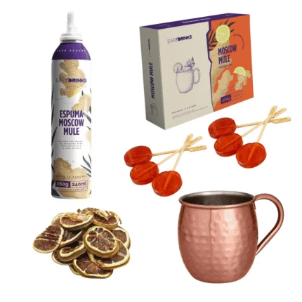 Adicionar ao carrinho Kit Completo para Moscow Mule (1 Caneca Inox + 1 Caixa c/ 6 Preparos + 1 Espuma + 6 Pirulitos + 20g Limão)