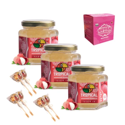 Adicionar ao carrinho Kit com 3 Bubbles Lichia + 6 Pirulitos de Frutas e Especiarias + 1 Nuvem Rosa