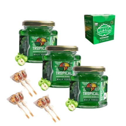 Adicionar ao carrinho Kit com 3 Bubbles Maçã Verde + 6 Pirulitos de Frutas e Especiarias + 1 Nuvem Verde