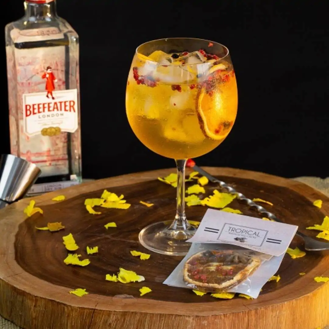 – TROPICAL FRESH: Laranja Desidratada + Zimbro + Anis Estrelado + Pimenta Rosa (Sugestão: Limão Siciliano ou Ramo de Hortelã ou Redbull Tropical)