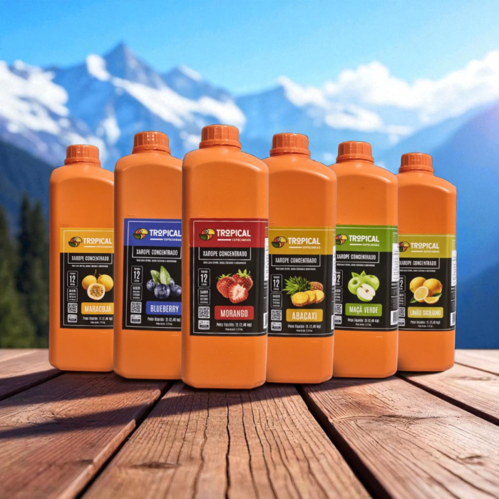 Chegou a nova linha de xaropes concentrados Tropical — pensada para transformar qualquer bebida em uma experiência cheia de sabor, aroma e personalidade.