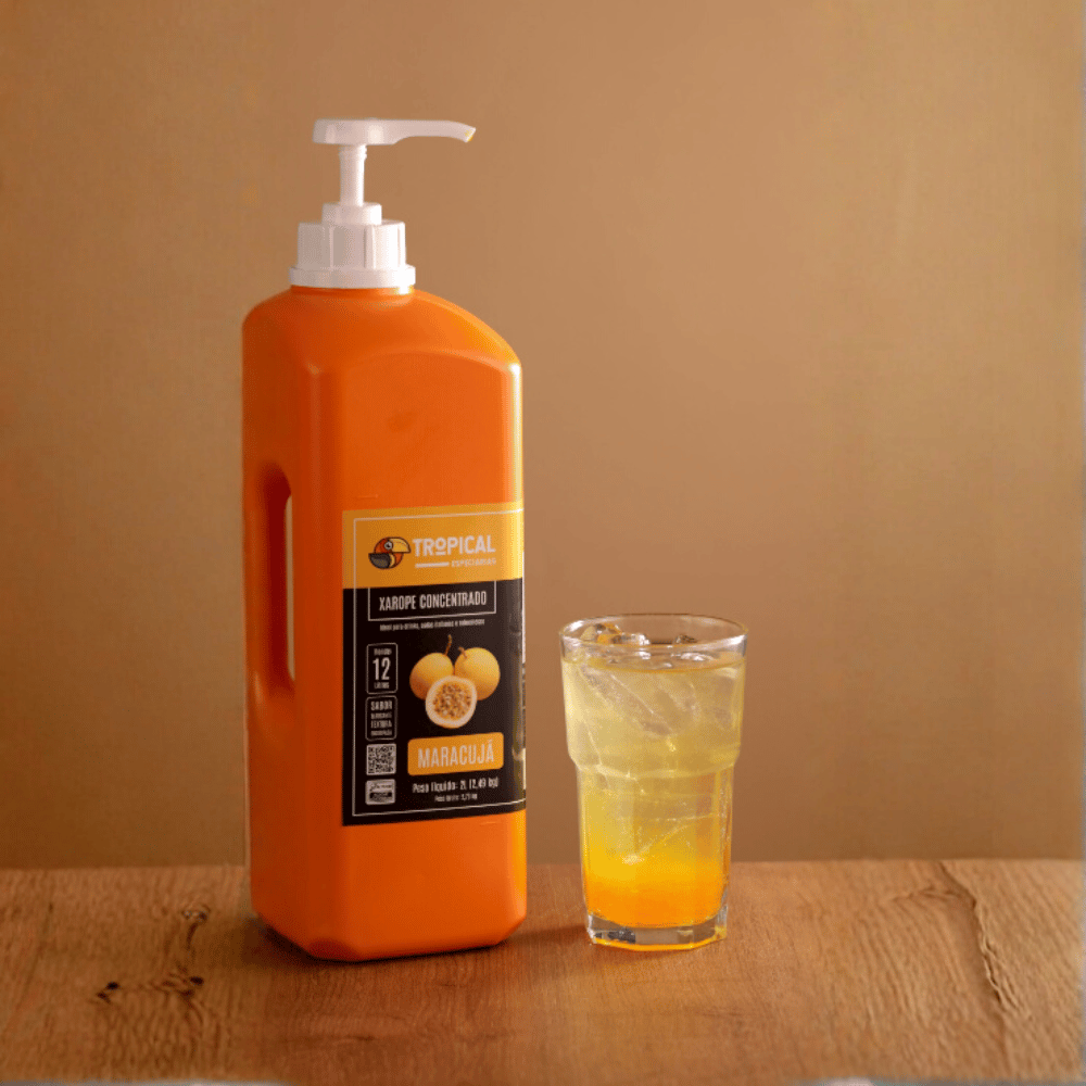 Proporção 1:6 para sabor equilibrado (Ex.: 25 ml de xarope para 150 ml de água)