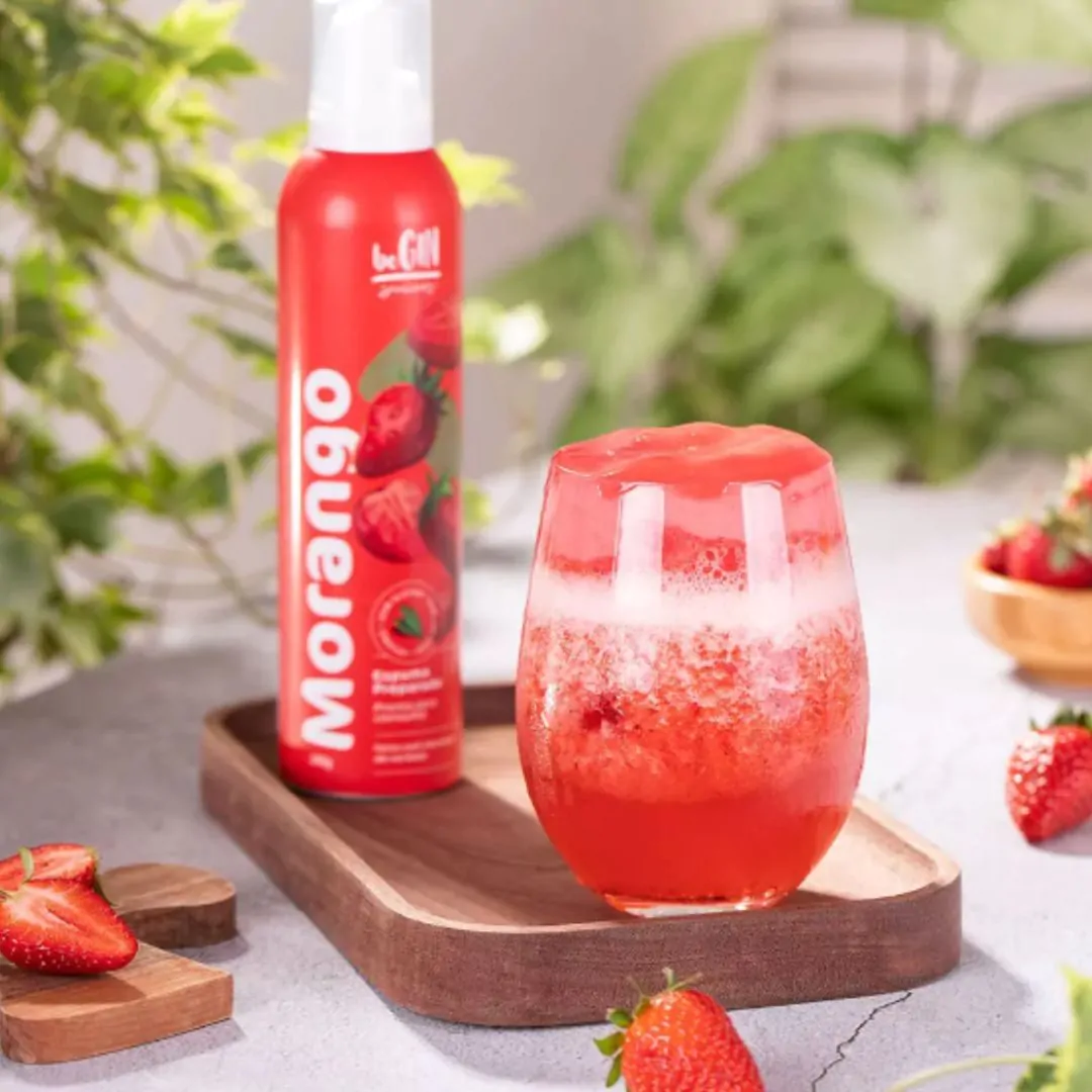 Spray de Espuma Preparada Sabor Morango, pronta para consumo