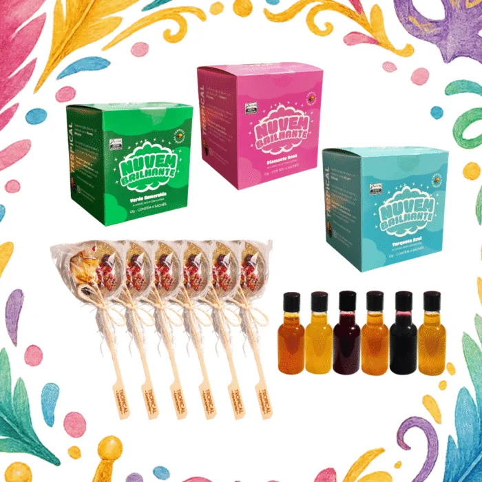 Kit 1 de Carnaval: 3 Nuvem + 6 Pirulitos de Frutas e Especiarias + 6 Xaropes 50ml