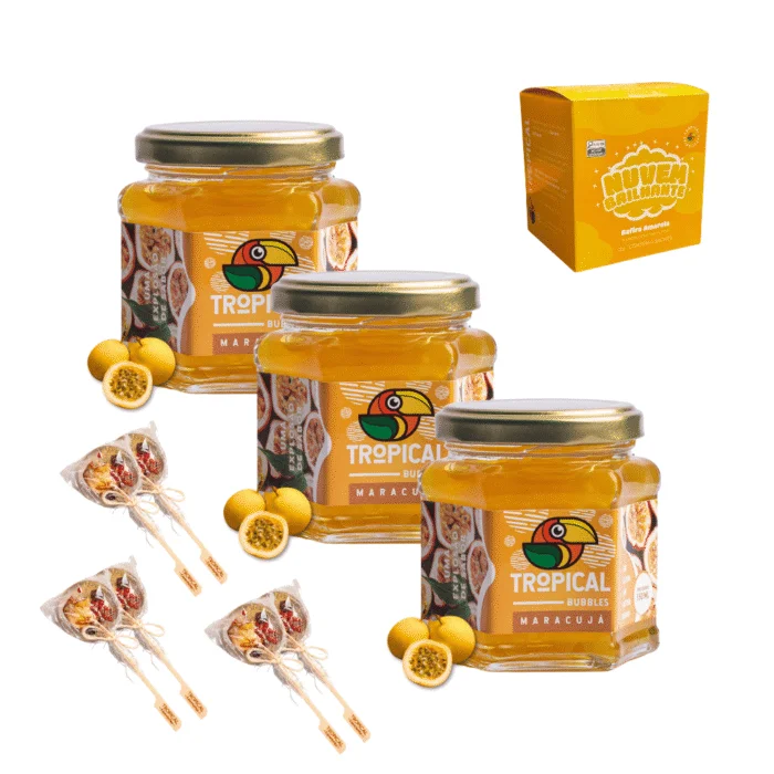 Kit com 3 Bubbles Maracujá + 6 Pirulitos de Frutas e Especiarias + 1 Nuvem Amarela