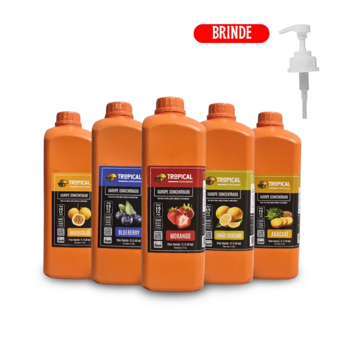Xaropes Tropical 2 Litros para Drinks, Soda, Doces (5 Sabores) + BRINDE: 1 Bomba Dosadora